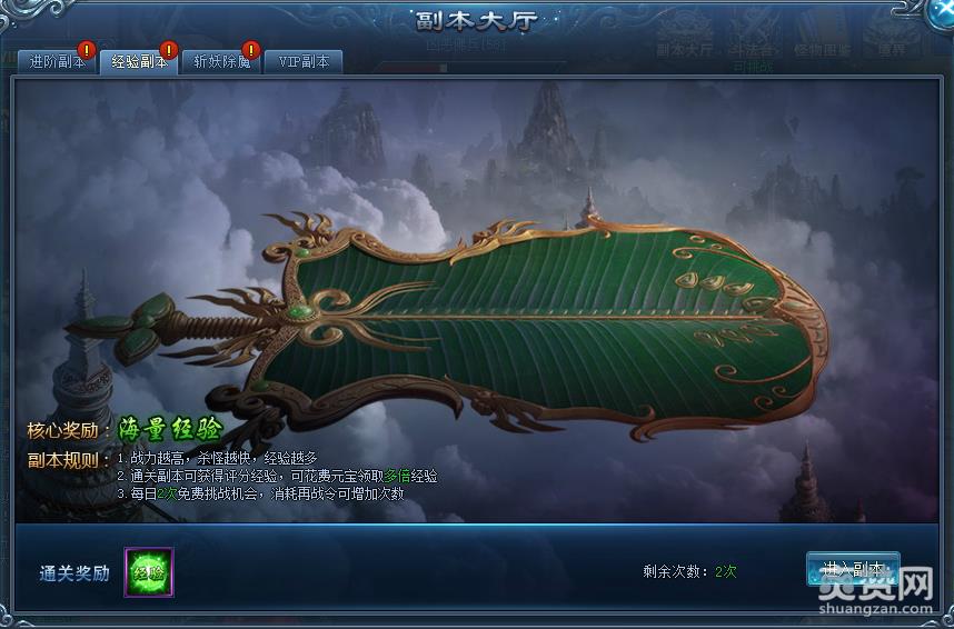 完成以上副本后可获取大量灵气值、经验、绑定元宝、进阶丹。