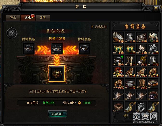 三件相同的装备可以合成为新的同部位同职业的装备。