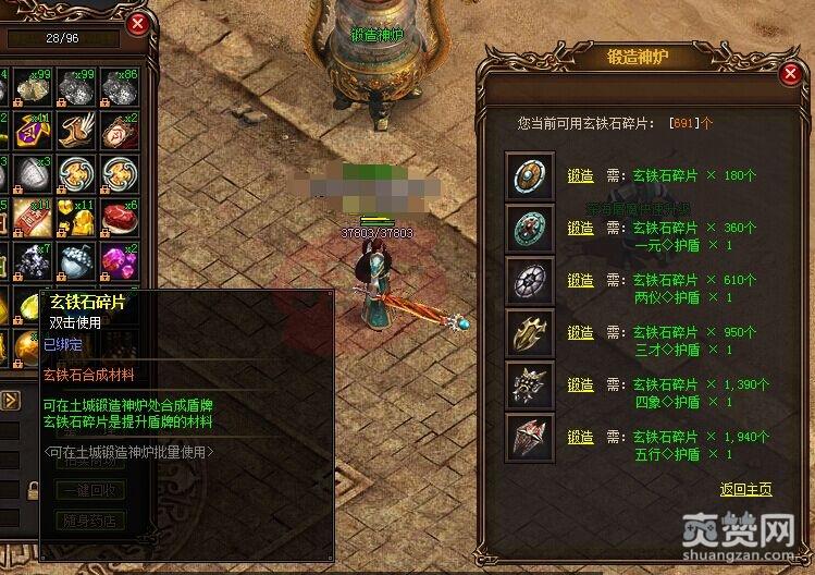 赤月传说玄铁石碎片是锻造锻造护盾用的合成材料,当大家拥有这种材料之后,直接到荒野土城安全区,找npc“锻造神炉”进行交互,并找到普通盾牌或高级盾牌两个选项,就能打造出你想需要护盾来使用。除了起始的护盾只需要玄铁石碎片就能合成,其余高级的护盾的获得方法,就要用到前一级的护盾和相应的玄天碎片来升级获取。