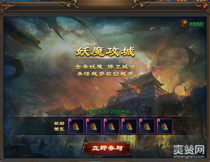 在妖魔攻城活动地图中,共存在四个雕像,玩家需前往守护雕像以免被妖魔攻破;在齐心协力击杀了BOSS之后,地图内的所有玩家都可以获得1次翻牌抽奖机会;若雕像在疏忽之下被妖魔击破,则该位置的妖魔将不再刷新;活动结束后将会根据个人击杀怪物积分进行排名奖励,击杀小妖魔可获得1积分,击败BOSS头领可获得10积分。
