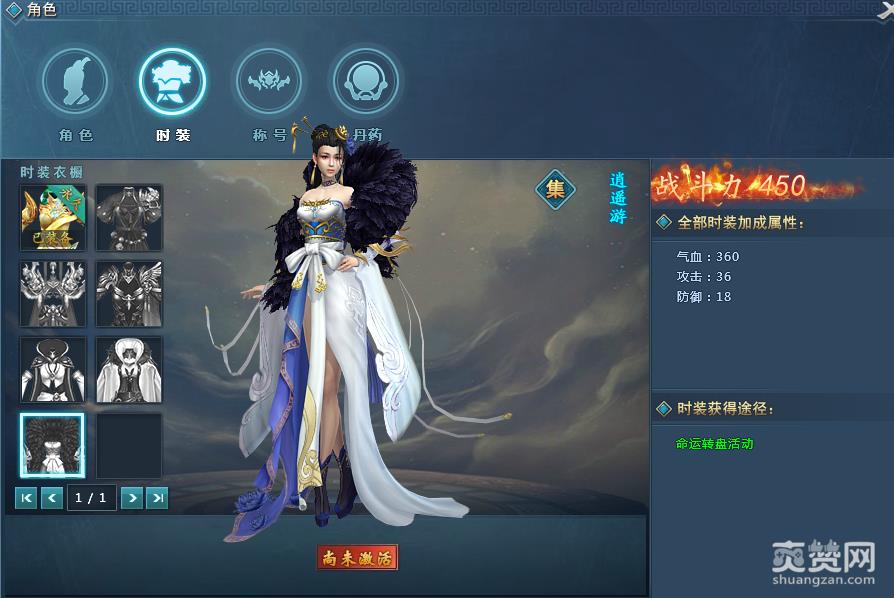 在游戏界面下方中部可以找到角色按钮,点击角色按钮就可以看到时装选项。当你初次进入游戏时,就会获得第一套时装“绫罗锦衣”,这是一套永久时装,不会过期。