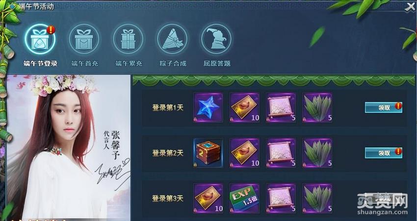 1、端午节登陆:每天登陆都可以领取一份奖励,供可以领取4天
