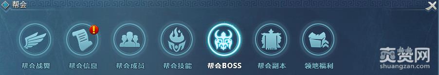 点击戏界面下方中央的“帮会”图标,进入帮会界面,就可以看到思美人帮会Boss的入口。