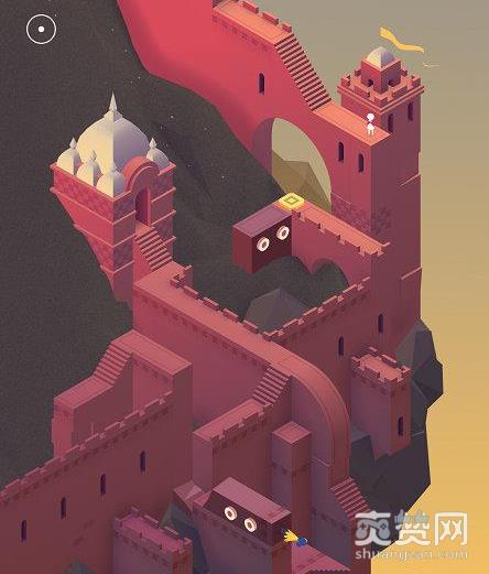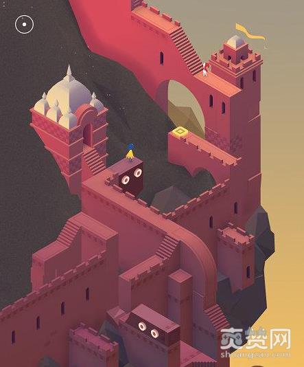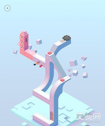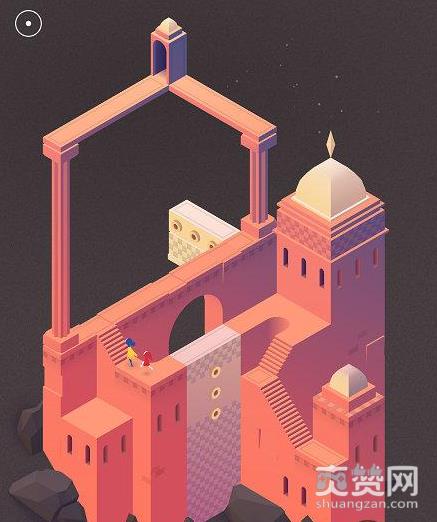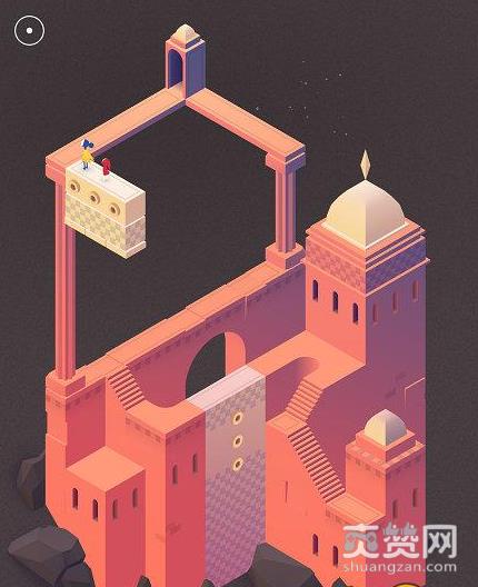移动最下面的三个孔的可移动路段,我们走上去。再将这个路段移到上面那个门的路面上,就能进门了。