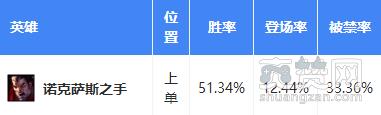 当然他的胜率和登场率也十分不错,证明了大多数玩家仍然可以驾驭他。