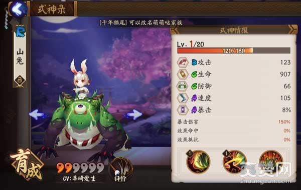 山兔是典型的辅助式神,攻击一般,生命和防御也一般,输出差,生存更差。然而,它的速度却很块啊,所以山兔在队伍中的主要作用就是拉条。