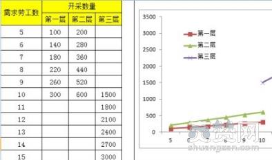 为方便展示:小编今天来和大家做一道数学题,首先设置钢为Y,劳工数为X,出函数曲线: