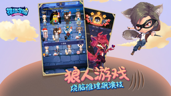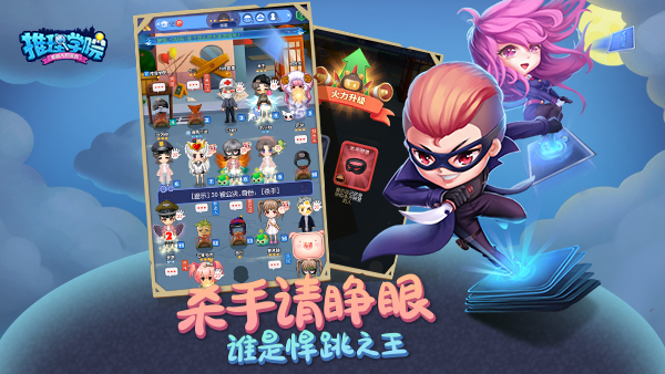 《推理学院》是一款聚会轰趴必备神器,多款经典桌游和互动小游戏让你和好友决战到天亮。一个人在家也能玩桌游,在线多人面杀,边玩边聊激情悍跳。独创“火力升级”随机事件,让游戏更加有趣。 【把桌游装进口袋,随时随地来一局】 杀手游戏:推理杀人游戏现已扩展十个游戏版本,三大阵营,22职业。20人同屏面杀有你意想不到的快乐。 炸弹猫:爱猫人士强烈推荐卡牌游戏。可爱猫咪音效,鬼畜猫咪画风,总有一样是你喜欢的。 狼人游戏:经典12人烧脑狼人游戏,找出谁是狼人!更有高级角色狼王、种狼、爱神、长老、熊。查杀悍跳各种套路等你来秀。 猜拳大逃杀:石头剪刀布,“鸡王”争霸赛。 【边玩边聊,有趣的社交等你来撩】 你可以在游戏中交友、拜师收徒、创建或加入家族、以及和萌妹帅锅步入婚姻殿堂并领取见证爱情的结婚证(而且不一定要男女搭配哦,男男女女都可以)! 【Q萌人物,丰富道具百变穿搭】 DIY你的魅力形象,数百种服饰、宠物以及五官美颜供你选择。丰富的讨好整蛊道具让你游戏互动更加有趣。
