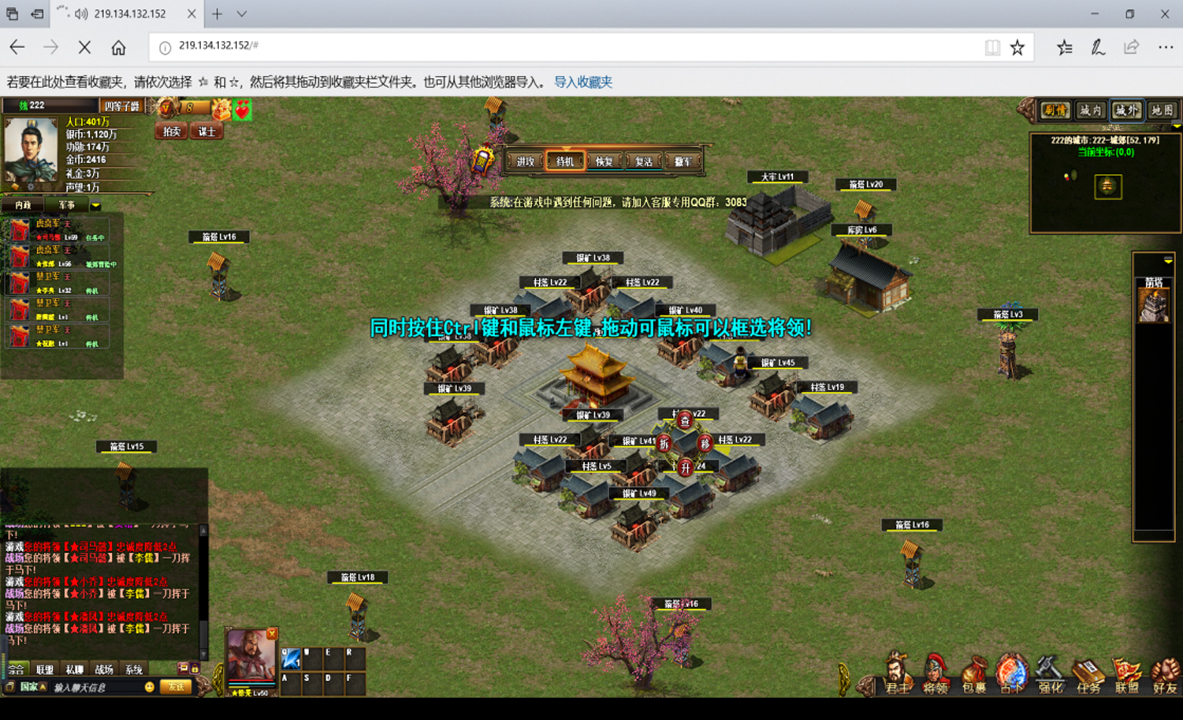 《霸业传》是一款以三国题材为背景的即时策略网页游戏,玩家扮演君主一角,招兵买马,广纳良将,壮大军队,勤于内政,发展城池,攻打敌城,争霸一方。游戏拥有丰富的玩家互动系统,拜访城池,俘虏武将,武将竞技,军团竞技,多人战场,多人副本等。实现你的宏图霸业。