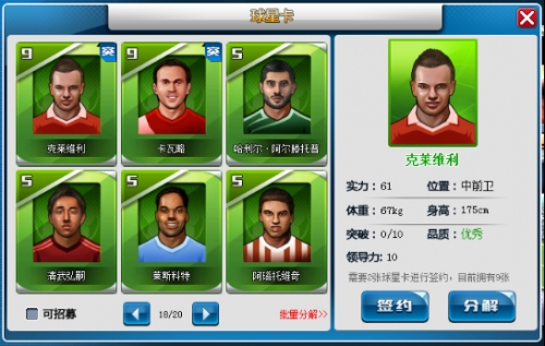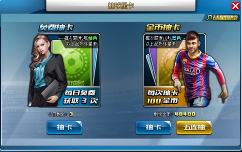 《足球全明星》是一款足球主题的网页游戏。游戏内容在招募球员、组队、比赛对战等基础操作之上,更增加了卡牌操作、在线交易及全明星球员加成(即球员数据更新)等功能,让人眼前一亮。全新的卡牌系统,让您的球员获得渠道更加简便;在线交易系统,让您与其他玩家之间的互动更加紧密;更有全明星球员加成,会根据球员在近期比赛中的表现进行调整,让您队伍中的球员表现不再一成不变。