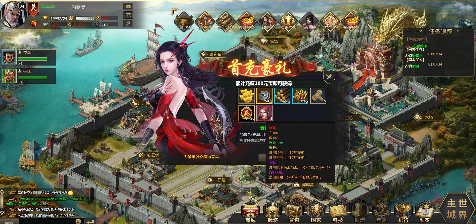 101游戏《三国战天下》是一款全新的三国题材的网页游戏,在游戏中你需要建设主城,发展军队,培养武将,攻城掠地,驰骋天下,精彩的三国画卷在玩家面前展开,奇妙的游戏剧情,独特的副本玩法,全面的培养流程将让玩家体验到别样的三国世界。