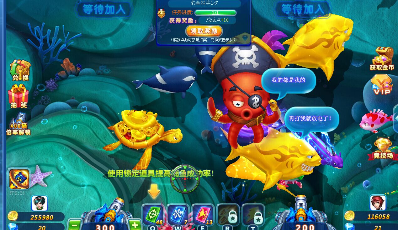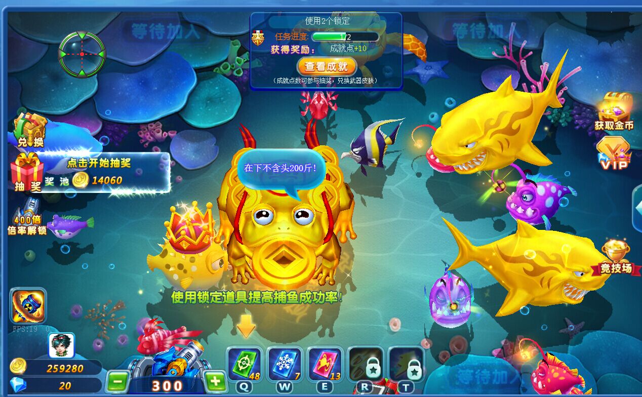 《猎鱼总动员》突破了传统捕鱼的游戏模式,在内容和玩法上都有很大的创新,融入了多武器系统,玩家可根据自身不同的操作习惯,选择不同的武器功能。更增加了丰富的社交互动功能,好友、战队。更加入多种比赛模式和奖励内容,玩家在游戏中会发现,这是一款休闲的捕鱼游戏,但又不止是这样而已,《猎鱼总动员》为捕鱼带来了更多可能,也为玩家带来了更多的乐趣。