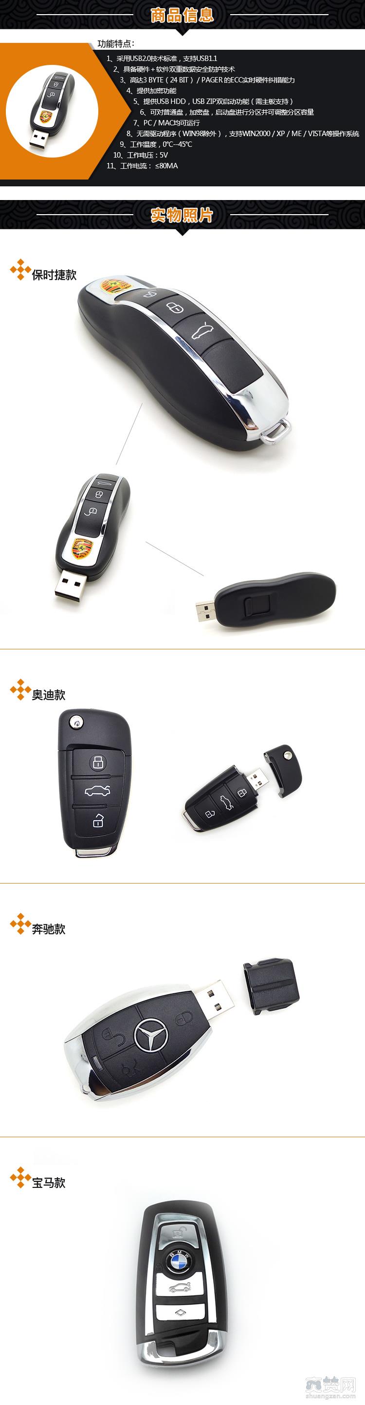 汽车钥匙U盘,轻便小巧装逼神器,创意U盘,8G内存
