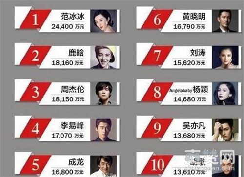 范冰冰的周杰伦的捞金能力自然是不用说,两位都已经是在娱乐圈摸爬滚打多年的老手了,但是才年仅27岁的鹿晗年入就已经达到了1.8亿元人民币,这不得不让吃惊,不过这似乎也在情理之中,鹿晗最近的势头是越来越猛。