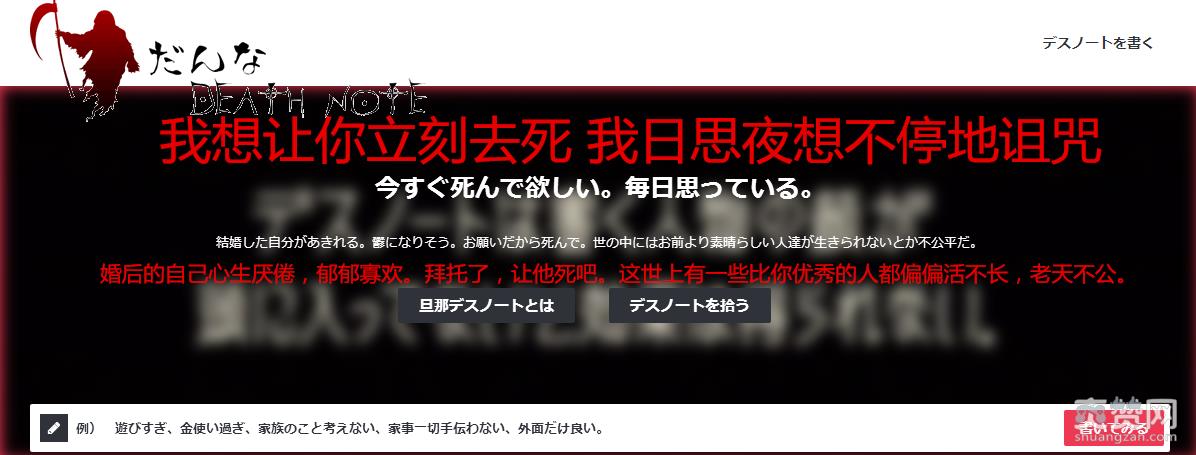 “丈夫死亡笔记”(だんなDEATH NOTE)网站最近震惊了日本。该网站聚集了一众“盼夫早死”的妻子们,她们对丈夫充满极大的怨恨和不满,希望他们早点死掉。“丈夫死亡笔记”网站借用了动漫《死亡笔记》的故事设定,发帖人写下丈夫的种种恶行,并且只要不写明死因,全部会因“心脏麻痹”而死。令人不寒而栗的是,截止海外君发稿的几小时前,还不断有人在网站上发帖控诉丈夫的种种行径。日本网友表示黑暗已经笼罩日本。