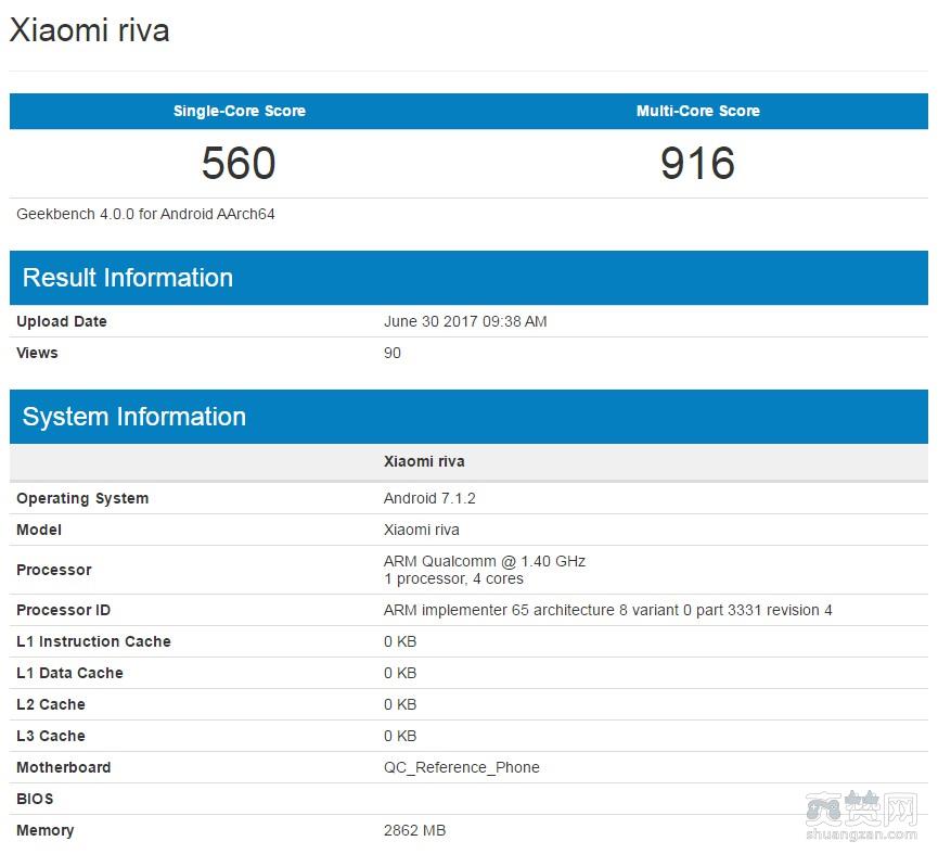 小米近期发布多款旗舰机,在低端机布局方面可以说已然沉寂许久,近日目前一款名为“小米riva”的小米新机现身Geekbench网站,并交出了单核560和多核916的跑分成绩,让我们不难认为小米又要开始新一波的“搞事”啦!
