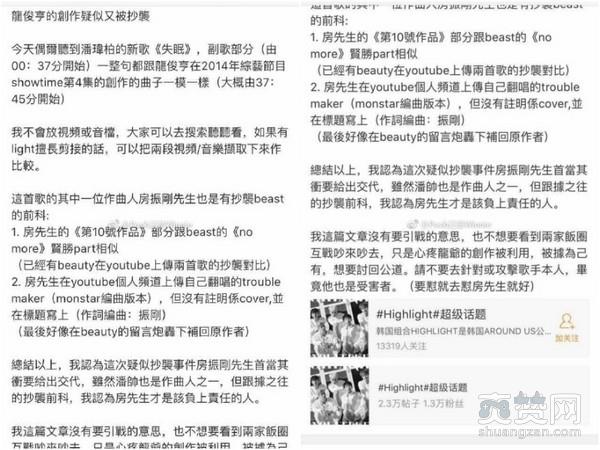 8月15日,HIGHLIGHT成员龙俊亨所属社对于“潘玮柏新曲《失眠》共同作曲人房振刚对抄袭龙俊亨创作发文道歉”一事表示:“感谢对方先承认抄袭并道歉,为了龙俊亨的权利不再继续受到侵害,关于侵犯著作权的行为,我们会进行整理后采取措施。”