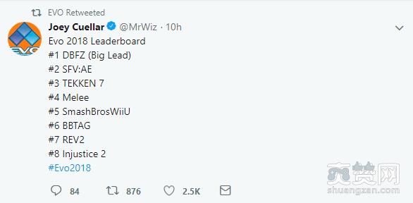 今日,EVO联合创始人之一Joey Cuellar发推文公开了目前各游戏注册人数的排行,《龙珠:斗士Z》位列第一,《街头霸王5:街机版》第二,《铁拳7》第三。(4—8:《任天堂明星大乱斗DX》、《任天堂明星大乱斗WiiU》、《苍翼默示录:交叉组队战》、《罪恶装备Rev2》、《不义联盟2》)
