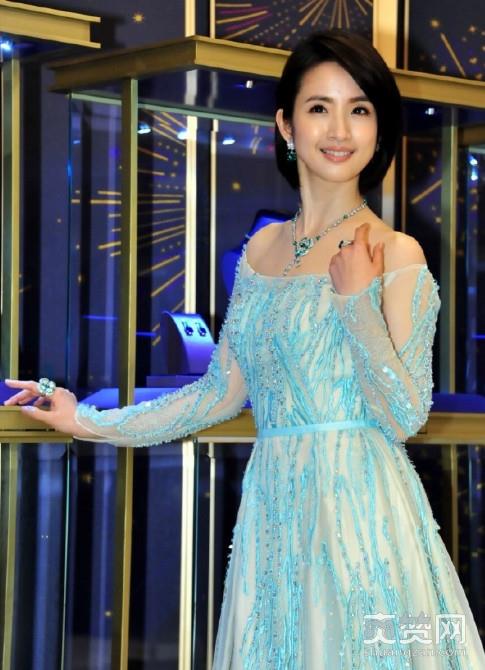 林依晨一袭淡蓝长裙出席活动 宛如冰雪公主