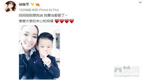 随后侯佩岑也在微博确认了此事,并发文:“妈妈刚刚跟我说,我要当哥哥了,谢谢大家的关心和祝福。”
