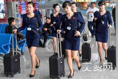 朝鲜空姐着新版制服亮相 裙子长度变短靓丽身影吸眼球