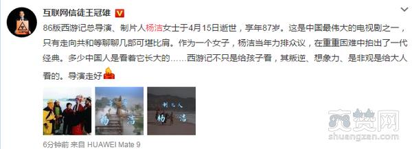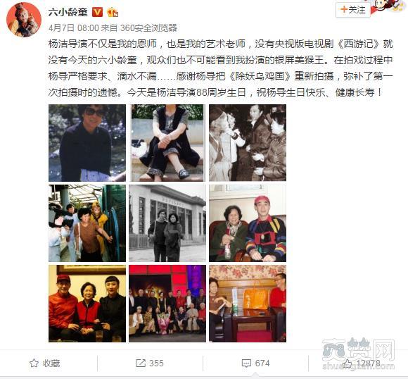 就在十天前,“猴哥”六小龄童还在微博上为杨洁导演庆祝88岁生日:“杨洁导演不仅是我的恩师,也是我的艺术老师,没有央视版电视剧《西游记》就没有今天的六小龄童,观众们也不可能看到我扮演的银屏美猴王。在拍戏过程中杨导严格要求、滴水不漏……感谢杨导把《除妖乌鸡国》重新拍摄,弥补了第一次拍摄时的遗憾。今天是杨洁导演88周岁生日,祝杨导生日快乐、健康长寿!”