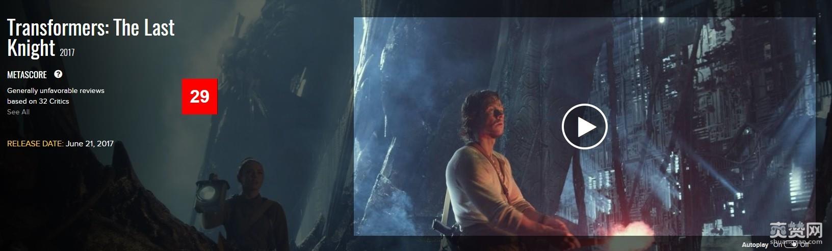 《变形金刚5:最后的骑士》已经在北美正式上映,影片的首批影评出炉,烂番茄上仅有16%新鲜度(均分3.2),62个评价中10新鲜52烂;而IGN也给本片打出了4.0分的超低评价。