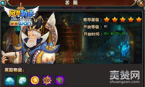 在ppwan《风色轨迹》中,智力答题是一场智力与智力的较量,考验知识储备,考验临场反应,同样考验玩家们的勇气!每周二、四、六晚上20:40开启,持续时间为15分钟,只要玩家达到40级,且在公共区域的玩家皆可参与。有自信、有实力的勇士们还在等什么呢?