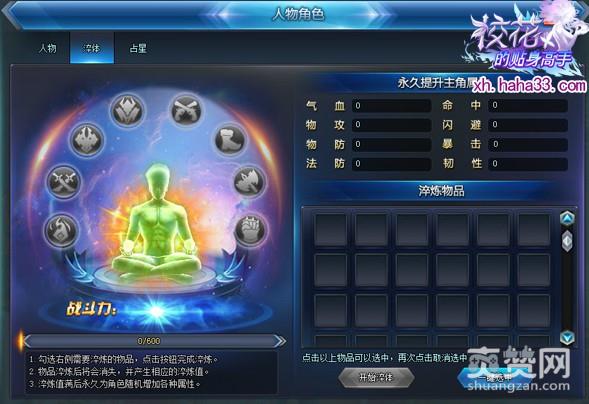 在《校花的贴身高手》游戏中,元神系统主要是修炼。修炼是有时间限制了,限制过后。角色会随机增中属性加成,包括:气血、攻击、防御、命中、闪避、暴击、韧性。
