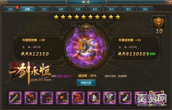 37《一件永恒》的玩家想要升级装备属性的话,可用消耗装备升星石的方法来增加装备基础属性百分比,升星等级越高,消耗的升星石越多,每次升星有一定的成功率,升星失败不会掉级,升星石可通过商城和活动获得。