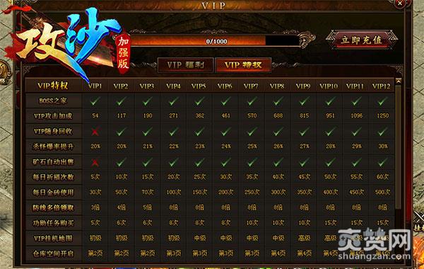 2、玩家的vip等级越高,享受的特权越多,vip12的玩家将享受超级特权,称霸全服不是梦!