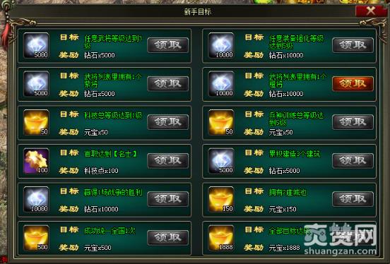 建造城市会获得嘉奖,进级武将、攻城克服利、练习军种、武将列表的的橙将等也都可以获得奖励。不管是元宝、钻石还是科技点,都有一定的机会获得,在列表中,若是有使命提前完成还可获得1888元宝哦!