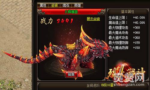 在这里驾驭的不再是老土单调的战马了,黑暗飞龙、烈火麒麟、九尾天狐、玉骨冰龙……丝毫不亚于在有端游戏里才能看见的绝世坐骑,在这里的都是您从未闻未见过的,是您想也想不到的,在这里只有满怀的惊喜和感叹。接下来就和小编一起到萝卜玩《烈火战神》略绝一下世坐骑的风华绝代吧。