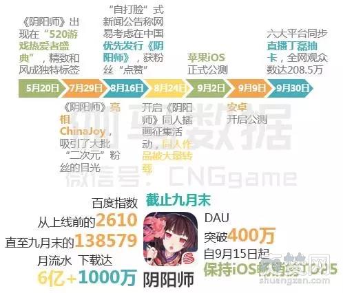 其中,《阴阳师》依然是一个典型案例。在伽马数据(CNG)去年发布的《2016年9月游戏企业品牌影响力报告》对其有详细介绍。报告指出,一系列营销策略使产品在二次元用户群体中不断传播,成为当时其DAU突破400万的重要原因。