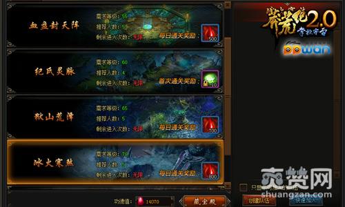 不管是暗月幽林还是冰火寒煞,亦或者是狱山荒泽,玩家都可以无限次进入,首次通关有着丰厚的通关奖励,都是极品哦!在ppwan《莽荒纪》这些副本中,除了首次通关奖励,还有着每日通关奖励,所有的副本每日通关奖励都是功德值,不同的副本奖励仅仅是功德值多少的区别!