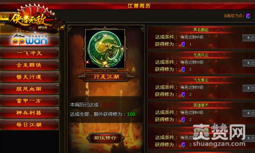 在ppwan《楚留香新传》中,江湖阅历即是游戏中制定的各种小目标,如提升等级、提升坐骑品阶、提升宠物品阶、提升装备品质等。目前,根据类型的不同,江湖阅历共分为:行走江湖、千里良驹、一飞冲天、古龙群侠、替天行道、腥风血雨、富甲一方、神兵利器、每日江湖几个分类。