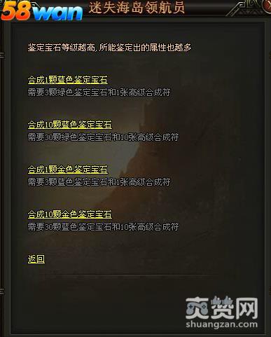 想要获得鉴定宝石,那么去迷失海岛找专业鉴宝大师吧.玩家消耗3个副本挑战卷轴就可通过铁血城NPC"迷失海岛领航员"进入迷失海岛,击杀鉴宝学徒有几率获得绿色鉴定宝石,击杀鉴宝大师有几率爆蓝色、金色鉴定宝石,boss30分钟刷新一次.想要宝石,先战斗吧!