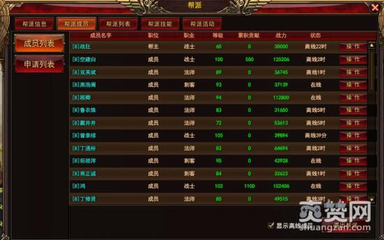 帮派成员列表简单看看就好,起码知道谁是帮主、副帮主等一系列帮派知名人物。如果你是帮主或者副帮主,还可以看看今天又有哪些傲天神印王座小伙伴来投靠帮会了。