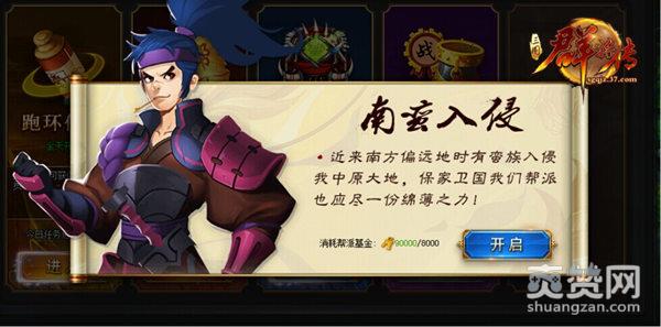 37《三国群将传》的南蛮入侵属于帮派中的一个玩法,当玩家所在的帮派等级达到3级时,即可开启南蛮入侵,点击主界面右下方帮派图标则进入帮派界面,再选择活动,就可以看到南蛮入侵的入口了,召集帮派兄弟一起奋勇杀敌,驱赶蛮族保家卫国。