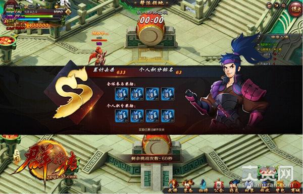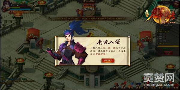 在37《三国群将传》南蛮入侵活动开始的时候,你将面临的是一群残暴又速度极快的蛮族,帮派中的兄弟要尽快击杀,保证图中央的宝藏血条不被入侵的怪物消灭,只要防守成功,系统将会根据玩家个人的积分发放奖励,以资鼓励。