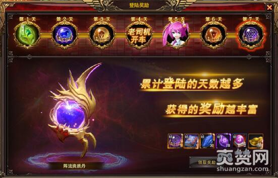 这就是第二日的奖励,许多材料比如3倍经验丹我们一下就能感知出来,前面第一个会不会是经验直升丹呢?还有装备升阶石、书籍等,想了解真相就一定要勤劳登录喔。