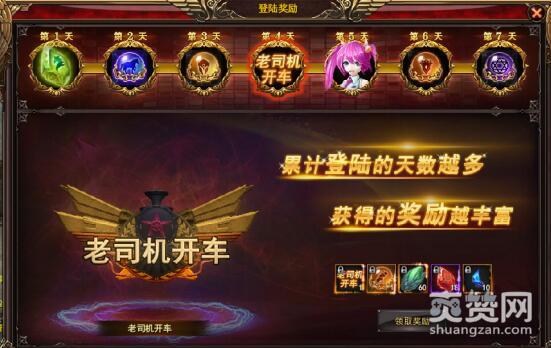 看看超强的神盾资质丹、装备升星石,哪一样不是傲天神印王座小伙伴梦寐以求的宝物?第三天能领取到就已经很好了,第四天就可以带着闪耀的“老司机开车”头衔开车上路了,没准还是很好的把妹神器。