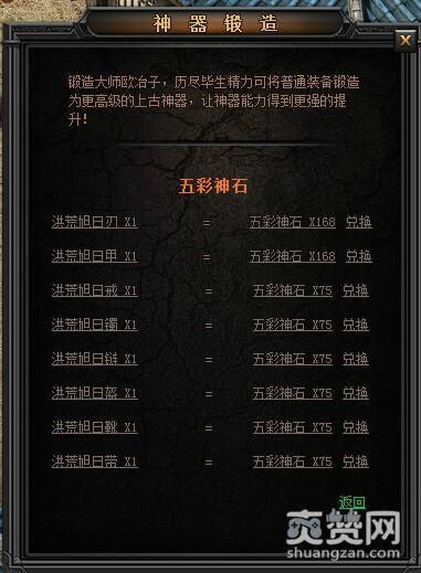 今天我们选择第8项五彩神石。以下列举了五彩神石所有的兑换公式。