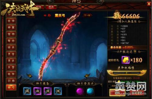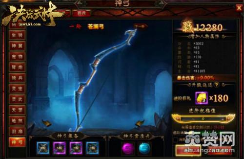有没有搞错,一阶就有12280多战力。虽说是加了神弓装备,资质丹什么的,如此威力确实令人胆寒。这还只能算是个入门级的,想要更高战力那就必须通过神弓进阶石来提升阶数,阶数越高战力越大。51《决战武林》游戏中一旦神弓阶数达到4阶,你还必须要注意:祝福值会在每日24点清零。如果没有准备好足够的升阶石,还是留在包内,以免造成不必要的损失。