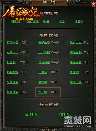 在“龙飞城”中找到一个叫“龙卫试炼场”的Npc