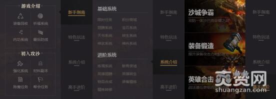打开傲天攻沙加强版,可以从新手指南、特色玩法、低筒介绍、高手进阶四大方面来了解整个游戏的全貌。是不是有很多系统之前没见过?是不是有许多玩法之前没体验过?小编将截图为你一一呈现,也许不经意间的一个系统、一点创新就成为你沉溺其中的理由。