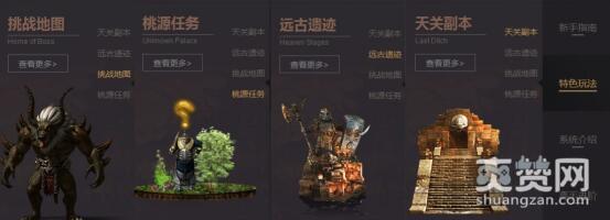 特色玩法中,挑战地图、桃园任务、远古遗迹、天关副本都有着自身独到的创意思路,不同的活动将展现不一样的场景,面对不同的怪物,享受不同的玩法。