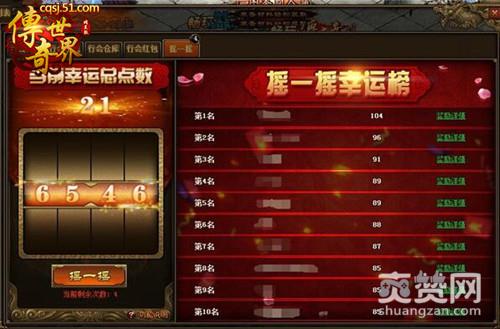 行会系统有新颖的摇一摇玩法。每位行会成员每天有5次摇一摇的机会。每次会摇出5个数字,五个数字相加之和则为幸运点数。每次幸运点数相加,则为当前幸运总点数。进入摇一摇幸运榜前10名,就能上榜并获得奖励。
