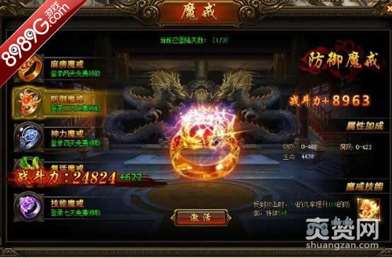 魔戒、魔戒我要重生,额额额。。。听到这里大家先不要误会,小编不是逗逼,也不是说书的,更不是来耍猴的,小编说的是8989G《烈火封神》游戏里面的魔戒,魔戒是什么呢?可能大家更喜欢把它称为特戒,因为它在8989g烈火封神里面是有着特殊功能的装备,不用打,只要连续登录七天就可以全部激活了。