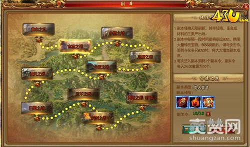 到了18级左右,会开启副本,副本是获取八卦阵材料的最重要途径,每个副本主要掉落的材料都不同,所以每天10次要好好利用。在这里有个小窍门:通过游戏里的跳跃功能,可以躲避BOSS的攻击,从而慢慢把BOSS磨死,获得更多的道具收益。要注意观察体力值,可别一直跳到没体力了,到时候可是会被BOSS揉虐死的。
